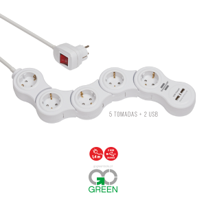 Inclui 5 tomadas 230v e 3 tomadas USB.