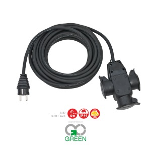 Uma extensão robustas, perfeita para utilizar no exterior, quer seja em estaleiros de construção, em casa ou mesmo em áreas comerciais, graças ao seu grau de proteção IP44. O cabo de borracha-neopreno de alta qualidade não é apenas robusto, mas também resistente ao óleo.Comprimento: 10m