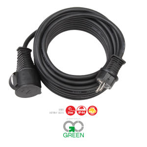 Uma extensão robustas, perfeita para utilizar no exterior, quer seja em estaleiros de construção, em casa ou mesmo em áreas comerciais, graças ao seu grau de proteção IP44. O cabo de borracha-neopreno de alta qualidade não é apenas robusto, mas também resistente ao óleo.Comprimento: 25m
