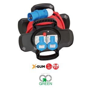 – Tomada de distribuição de 4 vias com cabo de 15m (H07RN-F 3G1.5) ideal para utilização em estaleiros de construção e para utilização permanente no exterior (classe de proteção IP54)