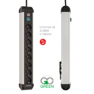 Com design elegante, interrutor de segurança iluminado (dois pólos) e tomadas a 45º para rentabilizar o espaço. Também pode ser montada na parede ou mesmo num pé de mesa graças ao conceito de montagem inovador.– Caixa elegante, intemporal e robusta em alumínio com acabamento mate