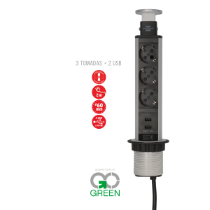 Inclui 3 tomadas 230v e 2 tomadas USB.