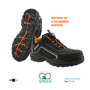 Sapatos de segurança com sistema de atacadores rápidos.
