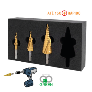 Set de brocas escalonadas TurboTip com classificação de resistência ao impacto, indicadas para materiais finos, tais como caixas elétricas ou chapas metálicas.