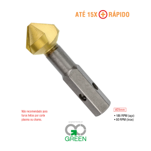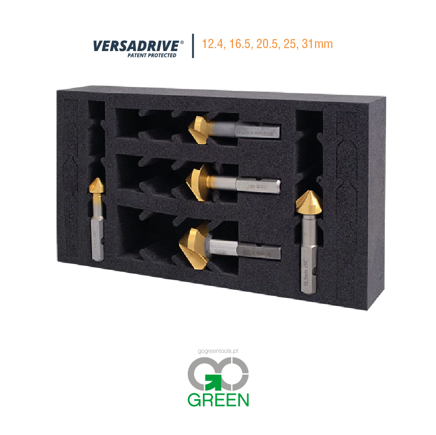 O escareador VersaDrive é um escareador de qualidade superior com ranhuras totalmente retificadas e revestimento GoldMax Titanium, que ajuda a reduzir o desgaste e o embotamento.