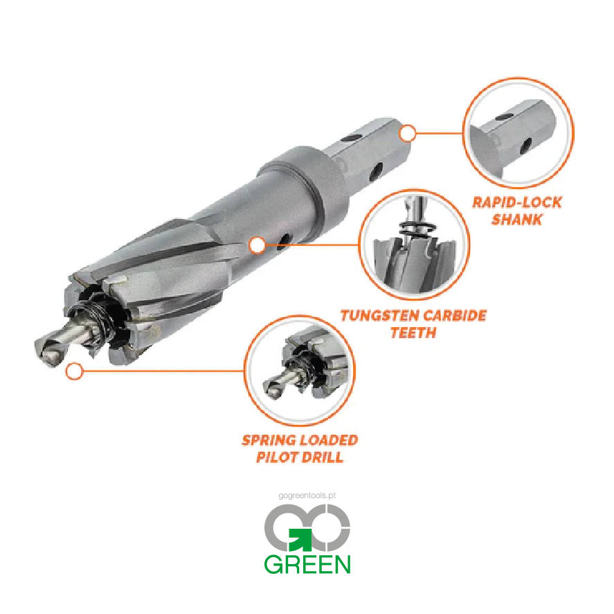 A solução ideal para fabricantes e montadores de aço que precisam de perfurar aço pesado em locais e projetos onde uma fresa rotativa é mais prática e segura do que uma fresa magnética.