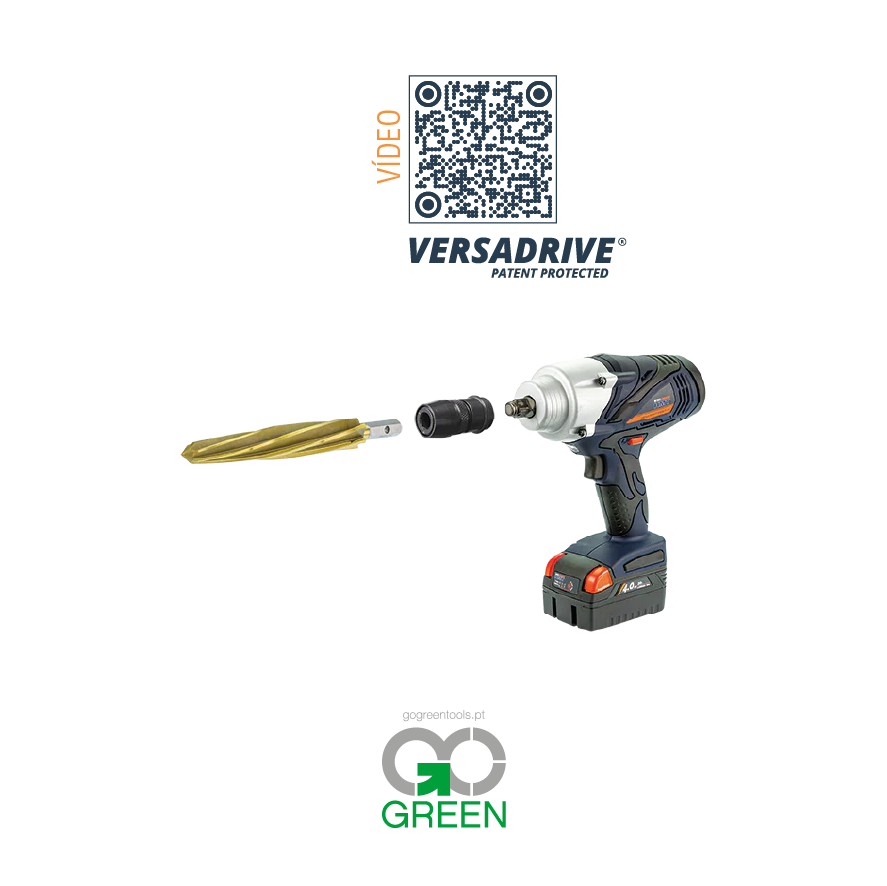 Os alargadores VersaDrive têm uma haste hexagonal antiderrapante patenteada, adequada para utilização em qualquer mandril de broca padrão de 1/2” para berbequins de pistola ou com um adaptador VersaDrive Rapid Lock para utilização numa vasta gama de ferramentas elétricas, tais como berbequins magnéticos.