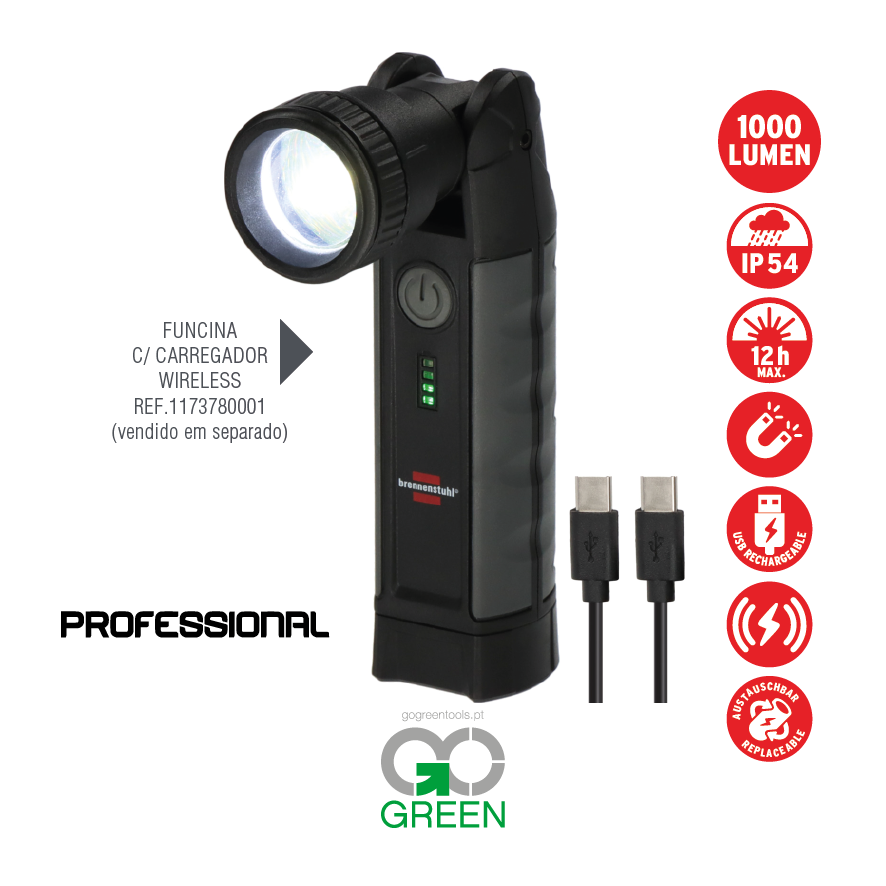 A lanterna LED profissional TL 1000 ACW é uma luz de inspeção extremamente robusta com bateria de iões de lítio substituível – 3.7V / 2.5Ah com indicador de carregamento. Pensada para iluminação de diferentes ambientes, esta lanterna de mão LED com classe de proteção IP54 tem três diferentes modos de comutação (100%-50%-25%) e foco infinitamente variável para atender a todos as necessidades. Pode carregar a lanterna com o cabo de carregamento USB C (fornecido) ou com o carregador indução sem fios ref.1173780001 (não incluído). Com ímanes integrados na parte de trás e no fundo, esta lanterna é extremamente versátil e oferece possibilidades de aplicação flexíveis.